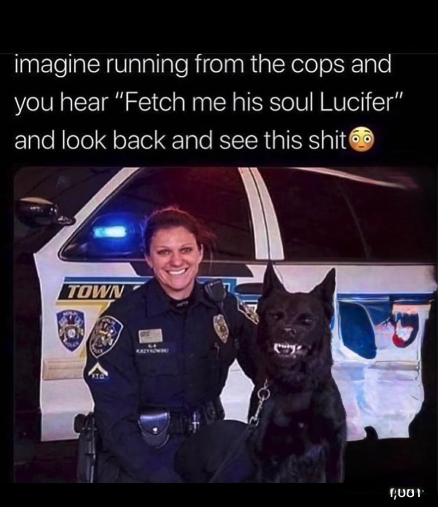 Her new K-9 partner growls in dead languages, smirks like he’s plotting world domination, and reacts to holy water like it personally insulted his ancestors.