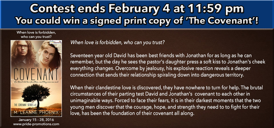 Enter to win a Rafflecopter Prize: A signed print copy of ‘The Covenant’. Must be 18 years of age or older to enter. Link and prize provided by the author and Pride Promotions.