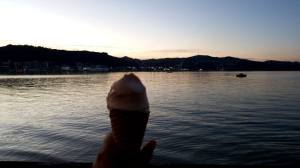 Fast forward about a month after I sent submitted the book and Reesha and I headed into Wellington after work to pick up a friend from the airport.  With time to spare, we stopped off at the location where that scene in the book takes place and…. went to Kaffee Eis for ice cream.  They were every bit as good as I’d imagined, and as a bonus we took photos of the ice cream, and the view from the waterfront as we ate them.