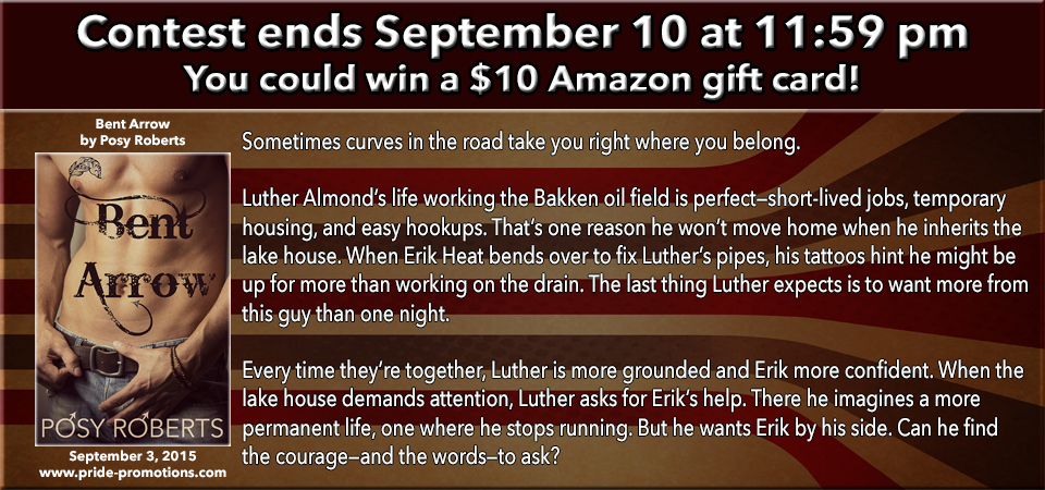 Enter to win a Rafflecopter Prize: $10 Amazon Gift Card. Must be 18 years of age or older to enter. Link and prize(s) provided by the author and Pride Promotions.