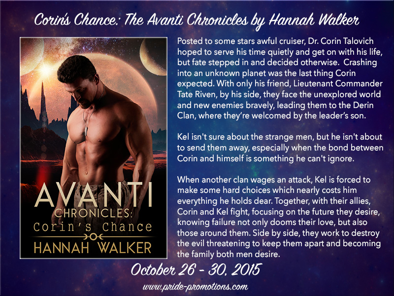 Thanks, Hannah. Its been wonderful having you here. Please stop by anytime. Now more about Corin’s Chance (Avanti Chronicles #1) by Hannah Walker