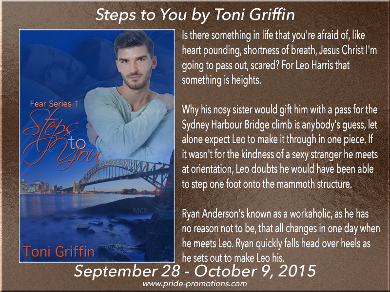 30-Sep:Three Books Over The Rainbow: https://threebooksovertherainbow.wordpress.com/2015/09/30/blog-tour-steps-to-you-by-toni-griffin/
