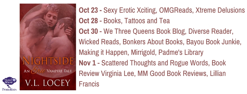 I felt like I was jumping into an existing story and I guess I kinda was but didn’t realize it. I don’t know if much of Vincente and Akio’s relationship was in the Erie collection or not. We jump right into Vincente and Akio’s marriage and Akio still working on embracing his life as a vampire and when they meet Ian he is quite intriguing.