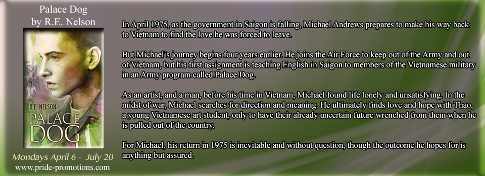 We have R. E. Nelson, author of Palace Dog, here today to talk about his memories of Vietnam and his story, Palace Dog. It’s one of our highly recommended reads, and you can find our review here.