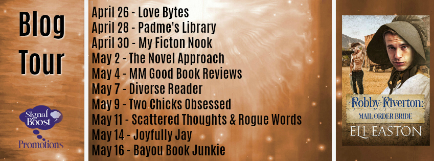 The year is 1860. Robby Riverton is a rising star on the New York stage. But he witnesses a murder by a famous crime boss and is forced to go on the run–all the way to Santa Fe. When he still hasn’t ditched his pursuers, he disguises himself as a mail order bride he meets on the wagon train. Caught between gangsters that want to kill him, and the crazy, uncouth family of his “intended”, Robby’s only ally is a lazy sheriff who sees exactly who Robby is — and can’t resist him.