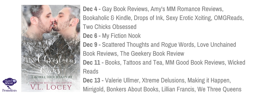 Such a heartwarming story! The Christmas Oaks (Laurel Holidays #1) by V.L. Locey has all the elements you look for in a holiday story. Family reconnecting, a and a homecoming. A rediscovery and re evaluation that takes place, both of self, of a place, and even of his past. It has two damaged men, each traumatized by their pasts who come together to heal and recover at Christmas and find love.